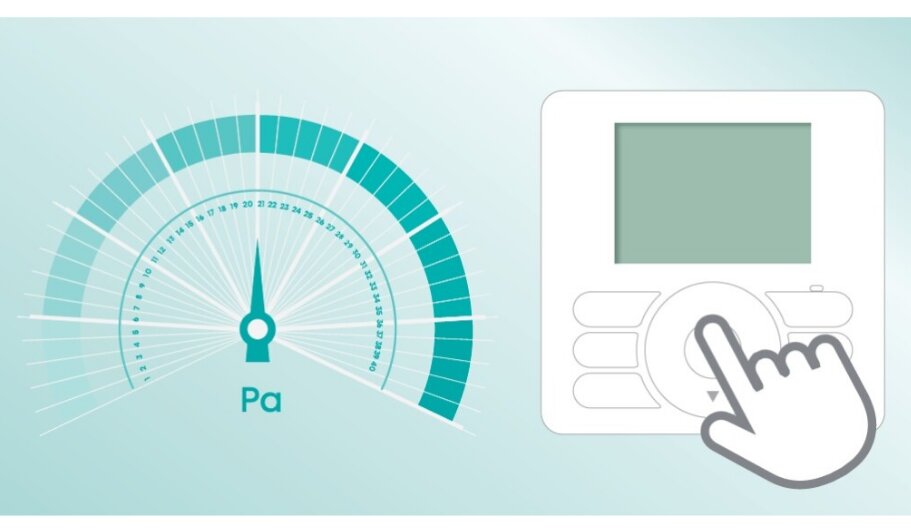 Βέλτιστη παροχή αέρα, με τη δυνατότητα ρύθμισης διαθέσιμης στατική πίεσης με ακρίβεια 1 Pa, μέσω ενσύρματου τηλεχειριστηρίου.