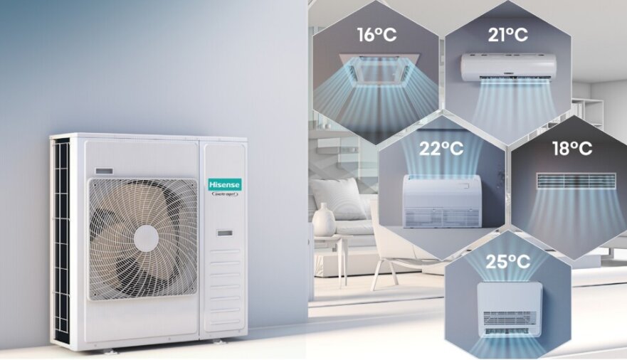 Στην σειρά Multi της Hisense, μία εξωτερική μονάδα έχει τη δυνατότητα να συνδεθεί με μέχρι 5 εσωτερικές μονάδες. Οι εσωτερικές μονάδες μπορούν να είναι διαφορετικού τύπου – τοίχου , κασέτα, καναλάτη, δαπέδου/οροφής ή κοσνσόλα. Κάθε μία εσωτερική μονάδα μπορεί να ρυθμιστεί αυτόνομα, με διαφορετικό set-point, καθώς και να ενεργοποιείται ή να απενεργοποιείται ξεχωριστά.